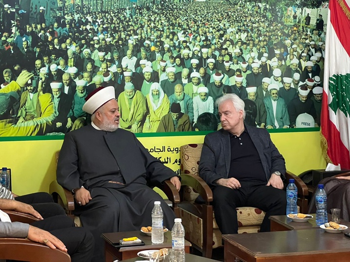 استقبل منسّق عام جبهة العمل الإسلامي في لبنان سماحة الشيخ الدكتور زهير عثمان الجعيد وأعضاء مجلس قيادة الجبهة (الشيخ عبد الله جبري ـ الشيخ يوسف مشلاوي ـ المحامي محمّد ملص وأمين سر الجبهة الشيخ شريف توتيو) أمين سر “مستقلّون من أجل لبنان” الأستاذ رافي ماديان والمهندس أيوب الحسيني، وذلك في مركز الجبهة الرئيسي في بيروت، وتمّ البحث والتداول في الشؤون المحلّية والإقليميّة والدوليّة، وجرى التشديد على حفظ قوّة لبنان ومقاومته، وعلى ضرورة وقف العدوان المستمر بشكل يومي على لبنان، وضرورة التزام العدو الإسرائيلي بتنفيذ القرار الأممي 1701، وضرورة تقيّده والتزامه بمندرجاته وبنوده، وخصوصاً أنّ لبنان إلتزم بهذا القرار منذ اليوم الأوّل. وتطرّق اللقاء أيضاً إلى الوضع المتفجّر والمأزوم في غزّة العزّة، وإلى حرب التجويع والإبادة الجماعية الدمويّة البشعة التي يقترفها العدو الصهيوني بحقّ أهلنا وإخواننا في غزّة، وكذلك الاعتداء المدان على الشقيقة قطر.